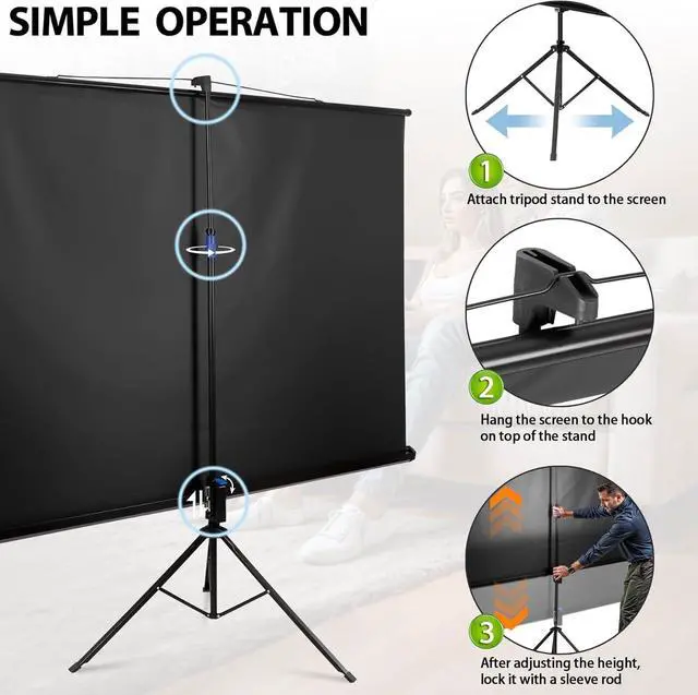 CONVENIENT TO CARRY: The 84 inch projector movie screen and stand is easy to set up and take down and store in the carry case when not in use. Lightweight and portable to take to anywhere with the carry case