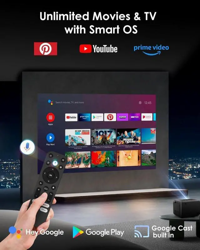 [Official Apps] Powered by authentic Google-certified Android TV, this projector gives you seamless access to Prime Video, YouTube, and thousands of other apps. Just say what you want with Google Voice Assistant for instant content discovery.