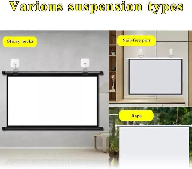 Convenient and Quick: Manual pull-down movie projection screen, lightweight and portable overall, easy to store and transport, can be mounted on walls or ceilings. It can be quickly used in any environment without complex operations