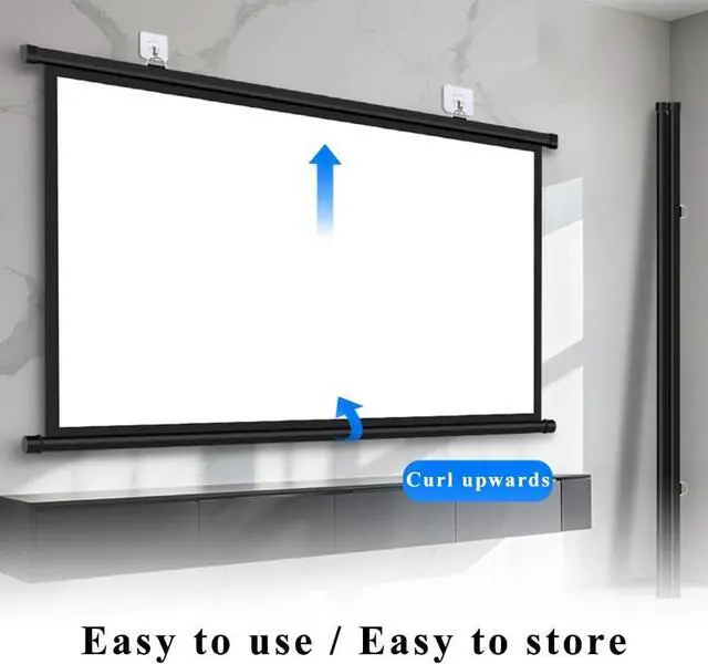 Convenient and Quick: This manual pull-down movie projection screen is lightweight and portable, making storage and transport hassle-free. It can also be directly mounted on the wall, making it easy to hang and use in any setting