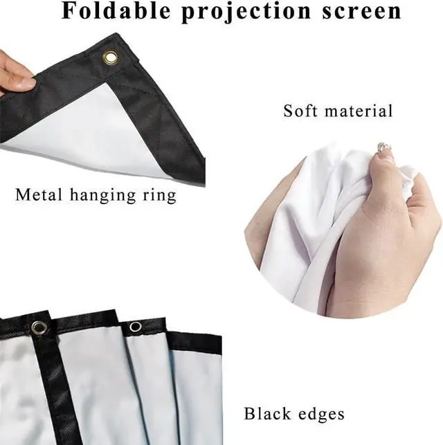 Portable: The foldable projection screen is made of soft materials, allowing it to be easily stored in a carrying bag, car trunk, or suitcase, saving storage space (carrying bag included)
