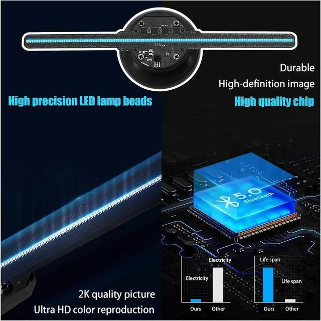 Features 128 LED beads for vibrant, clear 3D holographic imaging