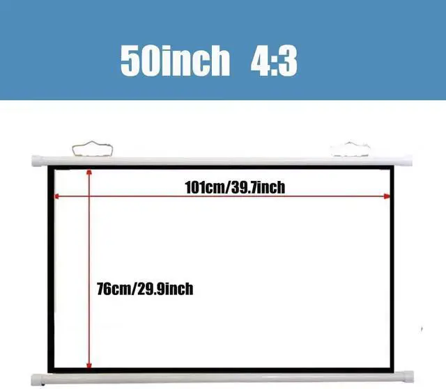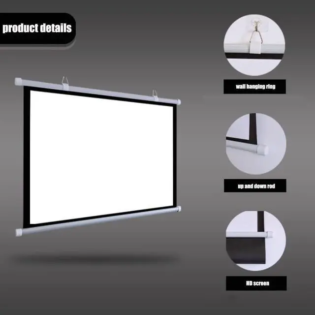 Manual roll-up projection screen, portable high-definition projector screen, can be used in living room, bedroom, office, classroom, etc., easy to roll up to save space.Product features: wrinkle-resistant, durable, easy to clean.Installation method: can be installed on the wall and ceiling.Product name: Projection screenProduct material: glass fiberProduct color: whiteProduct Type: Wall MountProduct size: 60/72 inchesProduct ratio: 4:3/16:9Package includes: 1 × Projector ScreenNote:1. Due to manual measurement, the size error is 1-2 cm.2. Before placing an order, please confirm whether the size meets your needs.