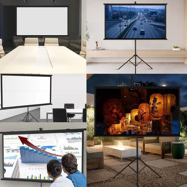 Tripod Projection Screen: Made of white fiberglass material, with a smooth and delicate surface. The diffuse reflection screen protects the eyes, and the edges of the projection screen are finished in black, making it easier to adjust the projection angle and enhancing image contrast