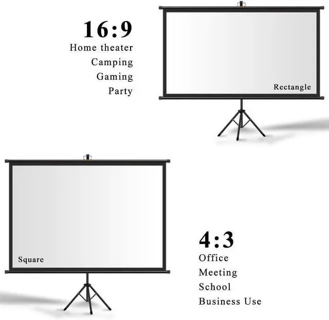 Wide Applications: The projection screen offers both 4:3 and 16:9 ratios, suitable for living rooms, bedrooms, conference rooms, classrooms, terraces, and other indoor and outdoor settings