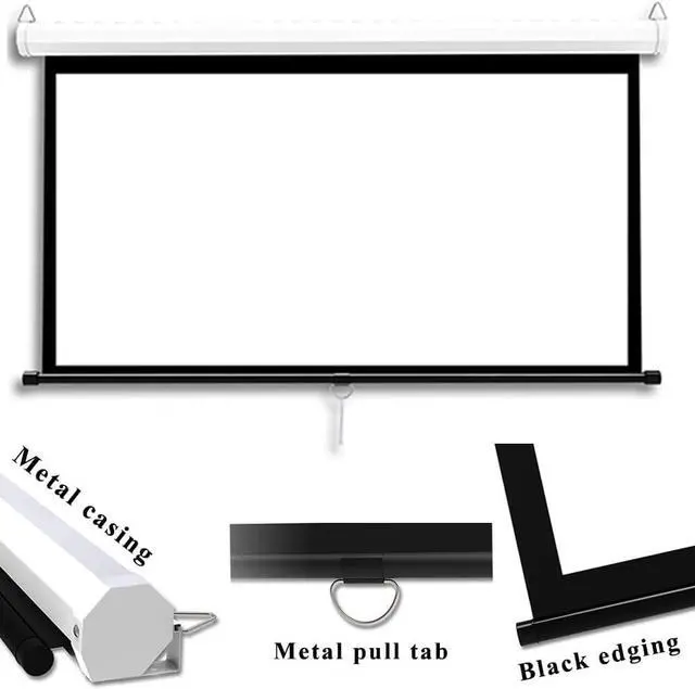 Durable: The pull-down projection screen is made of fiberglass, with a smooth and wrinkle-resistant surface. Combined with a metal casing, it protects the screen from damage. The black borders are opaque, enhancing visual effects