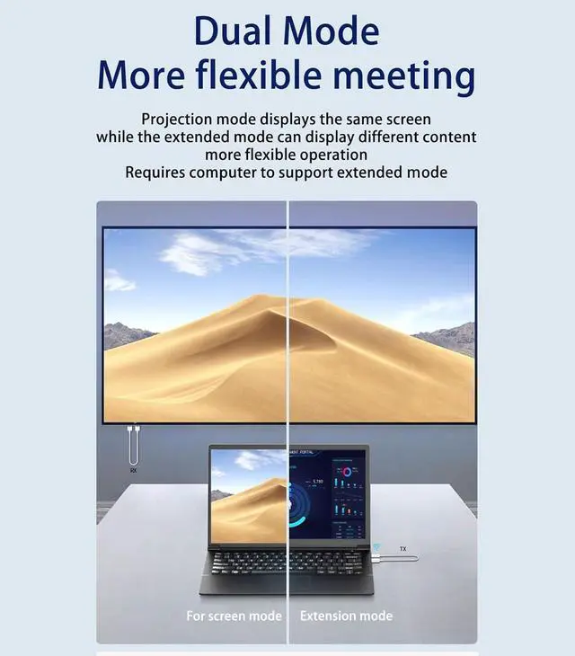 Mode: Projection mode displays the same screen, extension mode can display different content, mode is more flexible, need computer support extension mode.