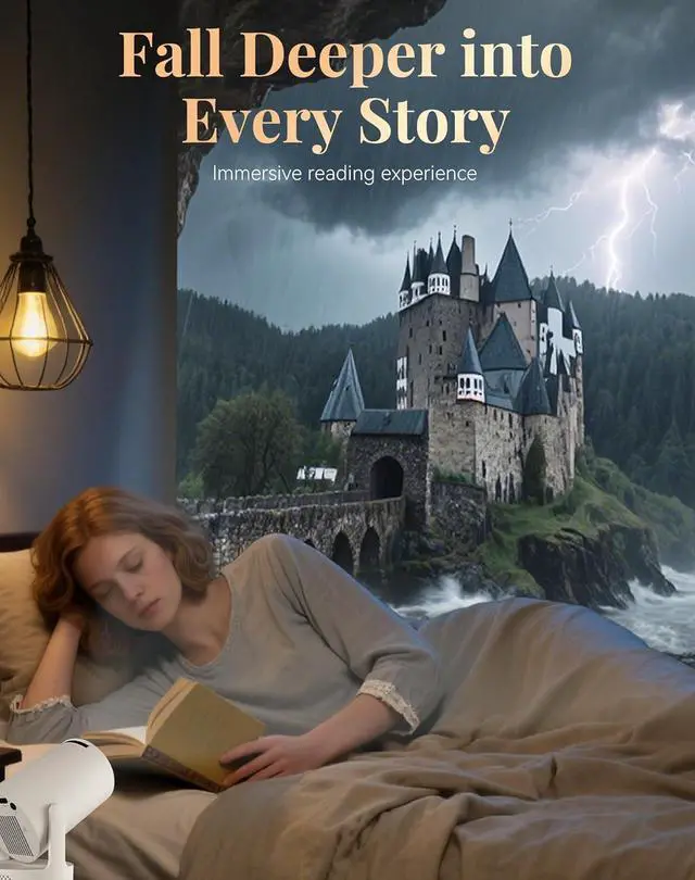 Transform Your Space into a Fantasy WorldStep into imagination with the projector for reading, a true cozy reading projector that turns walls into castles, starry skies, or a glowing fantasy window projector. Perfect as a book projector, it delivers whisper-quiet 4K HDR visuals and a soft ambient glowlike opening the realm portal projector in your own room.