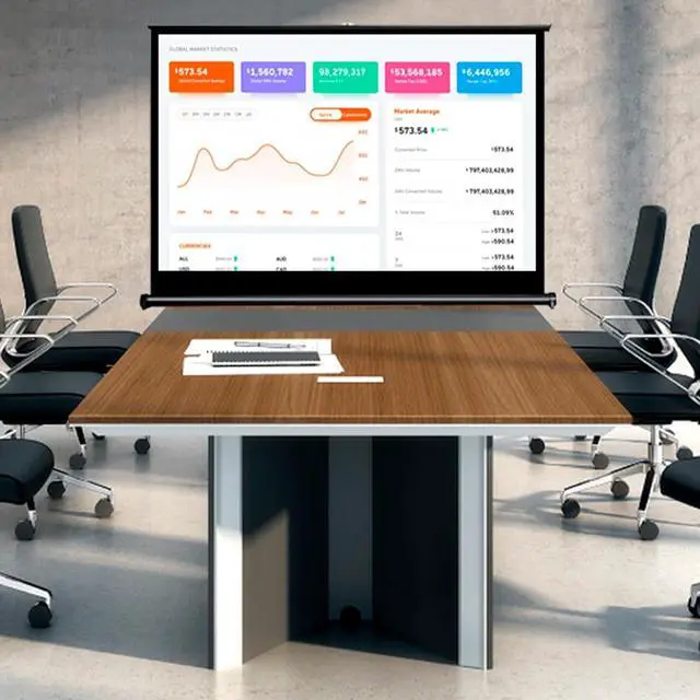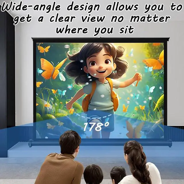 High-definition visual experienceThere is a projection screen made of white fiberglass material, which has good color rendering and anti-light transmission effect, bringing you and your family a high-definition visual experience. The design is compact, the appearance is beautiful, the body is lightweight, and the support legs at the bottom allow the screen to stand on various flat surfaces and tables.