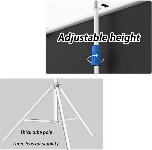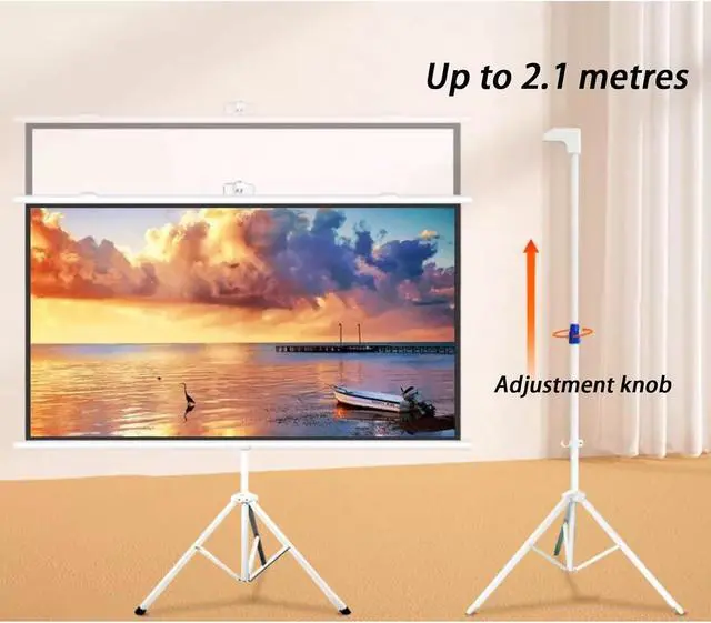 • Freestanding Projector ScreenThe sturdy tripod can be raised, folded and adjusted. The stable structure of the metal tripod provides sturdy and durable support. The stand can be folded, saving space and making it easy to carry.
