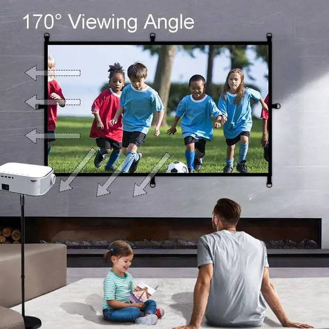 Projection screen with 16:9 aspect ratio and 170° viewing angle, the ratio is ergonomic and can be viewed in different positions