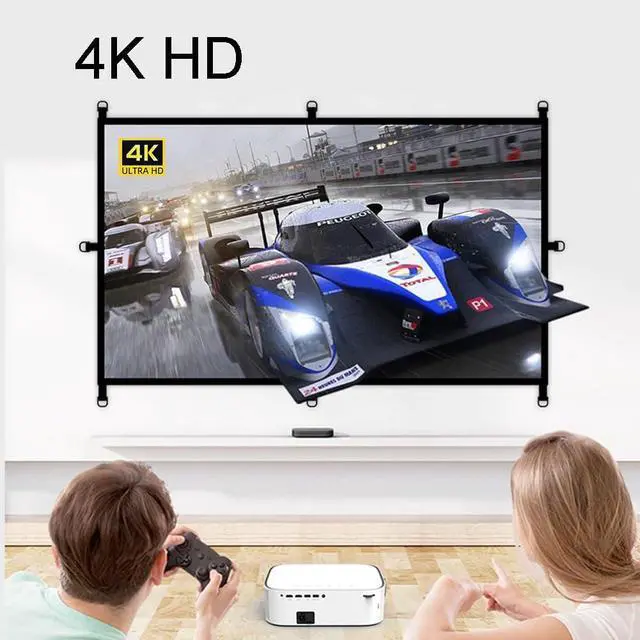 Movie screen is made of polyester denim silk curtain with 4K HD, which enhances the image contrast and color vividness, and supports both front and rear projection