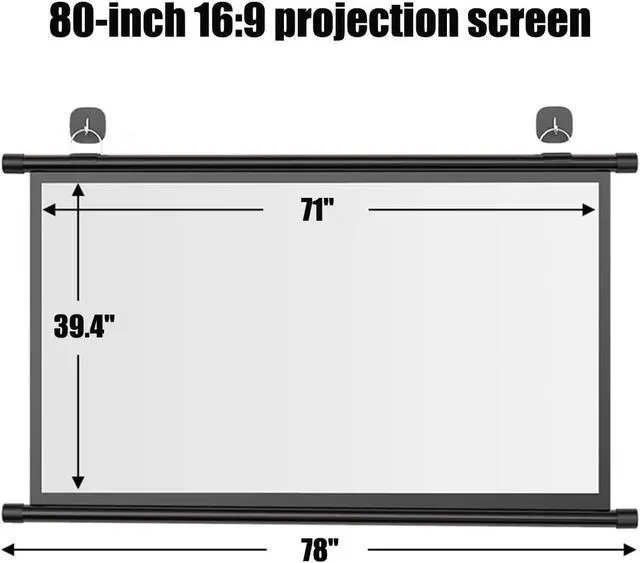 60 inches/72 inches/80 inches projection screen, provides 16:9/4:3 aspect ratio, can be used in different scenes. Lightweight and portable, it can be easily rolled up manually for storage or traveling with it.