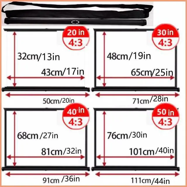 Compact and easy to store: 20-inch to 50-inch portable desktop projection screens that are convenient to carry and can easily fit into a car trunk