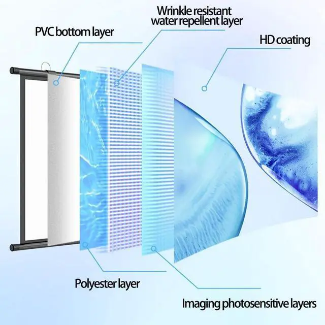Material: The surface of the curtain is made of 5 layers of optical coating, which makes the image brighter and softer, and produces high color reproduction, so that you will not feel tired after watching for a long time