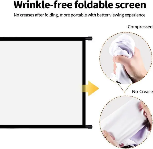 Wrinkle-Free and Anti-Crease Material Enjoy a smooth, flawless projection surface every time thanks to premium anti-crease fabric that stays flat and crease-resistant even after foldingno more distracting lines or hotspots for crystal-clear images.
