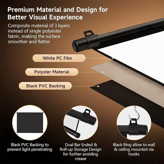 High-Definition Screen: Made of white fiberglass, enhancing effects and contrast for richer color viewing. Can be used for long periods without fading or warping, thick, smooth, and wrinkle-free.