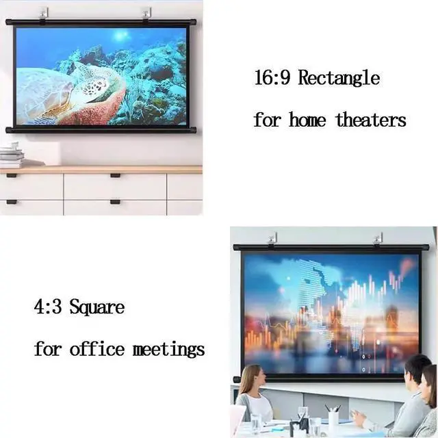 The manual projection screen can be mounted on the wall or ceiling, letting you watch your favorite movies on a large screen, play video games with friends, or share work-related presentations or videos with a large group of people.