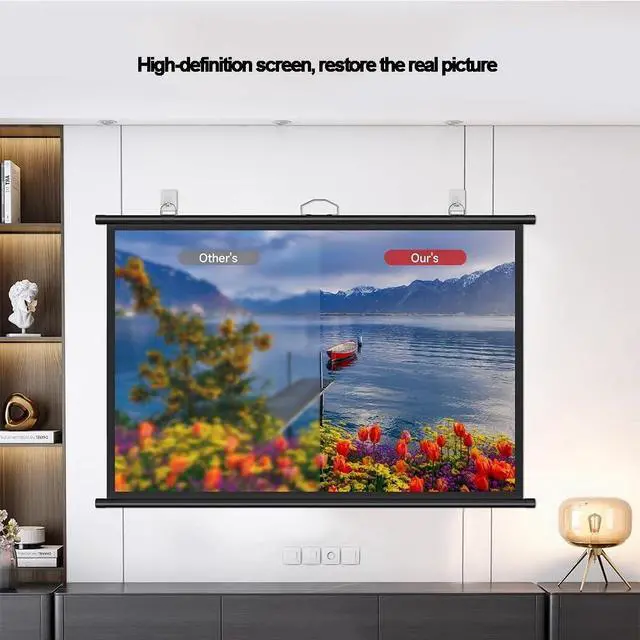 The home theater projector screen allows for flexible adjustment of the hook position; the wall-mounted upper and lower rods keep the screen flat, preventing curling and wrinkling; the HD screen ensures strong image focus and resistance to bright light, making it viewable even during the day.