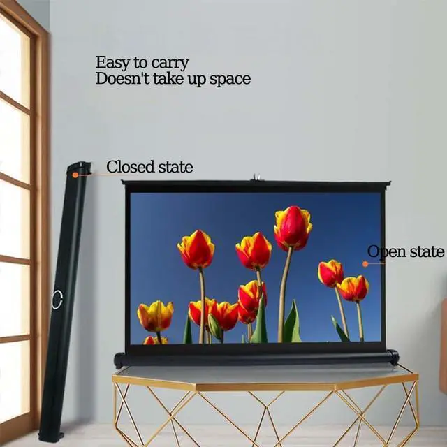 The retractable desktop movie screen features a quick-pull system, allowing the screen to be raised and lowered freely; the thickened aluminum tube stand is stable and durable.