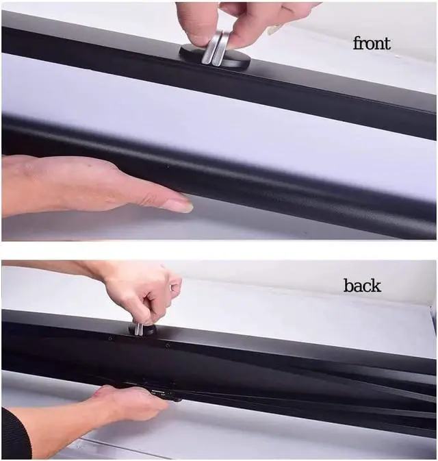 The floor-standing projector screen is made of white fiberglass, making the screen flat, wrinkle-free, and easy to clean. The black backside prevents light from passing through, providing an ultimate viewing experience.