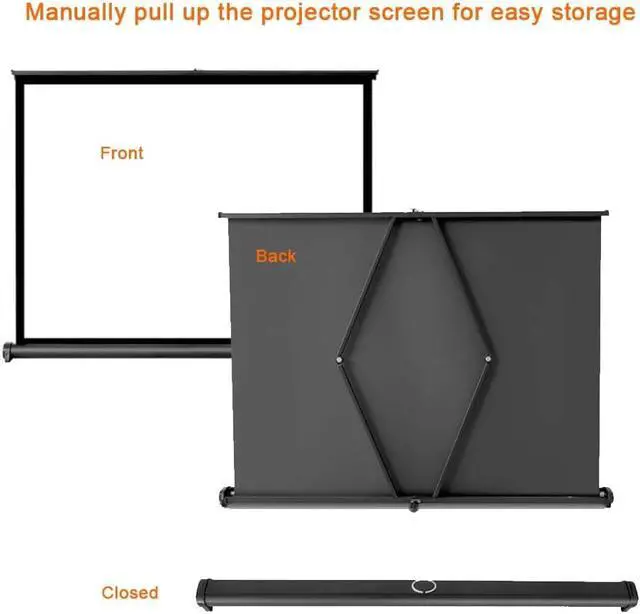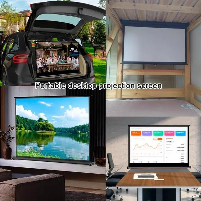 The projection screen stands smoothly on any flat surface or table, perfect for outdoor or indoor movie viewing.