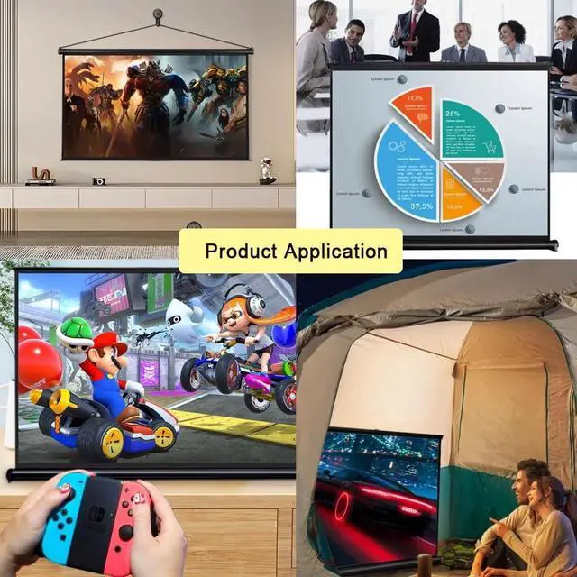 Portable projection screen: can be easily placed anywhere, with a stable base and a self-supporting pull-out design for convenient storage and storage. Easy to carry when going out.
