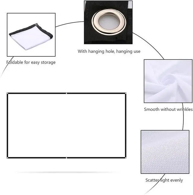 3.The projection screen is smooth with no wrinkles when folded or flattened. You don't need to waste time hanging the screen for a few days or ironing.