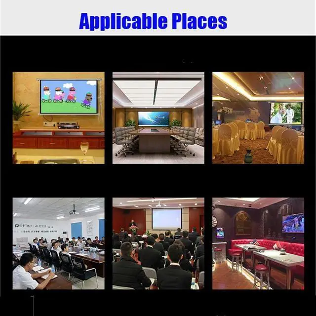 Application scenarios. HD indoor projector screen is the best choice for both workplace, or used as entertainment equipment, home, living room, bar, classroom, business occasion, conference room, cinema.