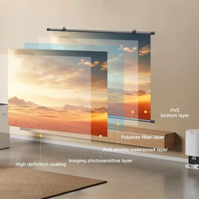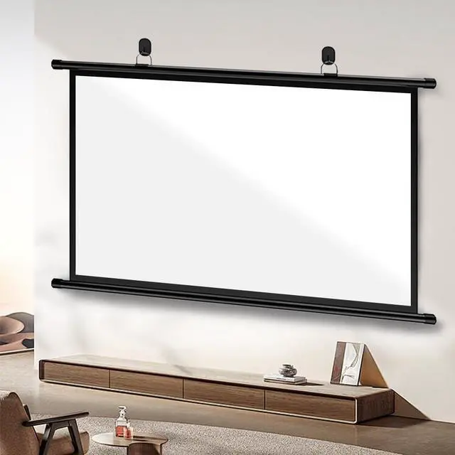 Manually retractable projection screen, portable and foldable, with a roll-up design, supports 4K high-definition image quality projection, and is very convenient for storage when collapsed.