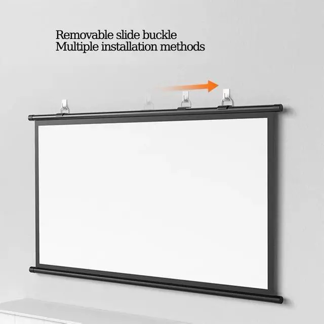 The portable projection screen has movable hanging rings on top, allowing installation on walls or ceilings. The sliding buckle can be adjusted freely to accommodate different environments and spaces, making installation simple and quick.