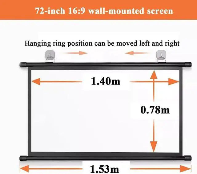 Manual Pull Down Portable Retractable Projection Screen Wrinkle Resistant Wall Mounted Screen for Office/Home Theater(16:09,72inch)