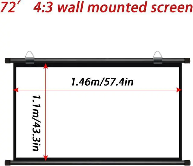 [Screen format]: Size: 30/40/50/60/72 inches; Ratio: 4:3, 16:9 two image formats, 16:9 image format provides an impressive home theater experience, 4: 3 image formats can be used for education/computer screen projection meetings/web pages/presentations.