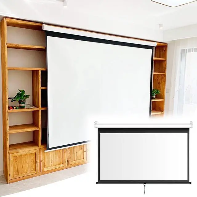 Manual pull-down projector screen requires no electricity and is lightweight and convenient. Can be easily rolled up to save space, perfect for indoor and outdoor use