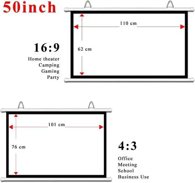 Multiple Sizes Available: The screen comes in 4:3 and 16:9 aspect ratios, with three sizes of 40, 50, and 60 inches to choose from, allowing selection based on different usage scenarios