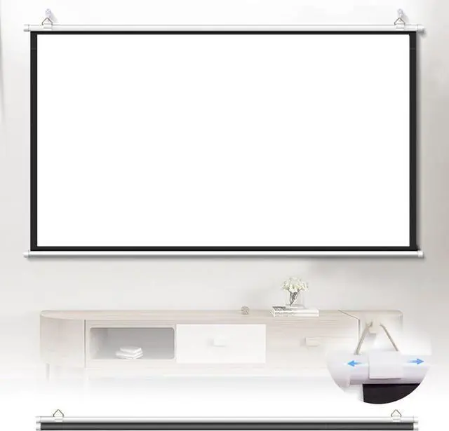 Manual Pull-Down Projection Screen: Made of high-definition nano glass fiber, with uniform surface thickness, it hangs naturally and smoothly when unfolded and is not prone to wrinkles, providing you with an excellent viewing experience