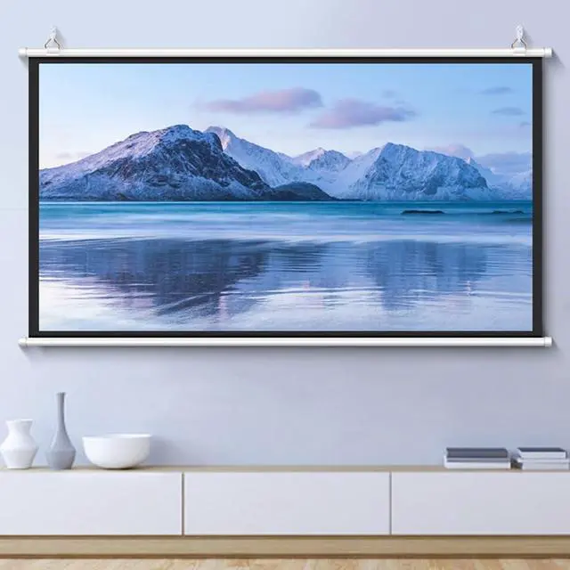 Easy to Use: The hanging hooks of this wall-mounted projection screen are freely adjustable, allowing it to be hung according to the specific width of the wall. When stored, it takes up little space, saving room
