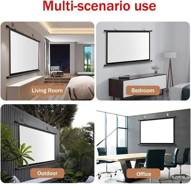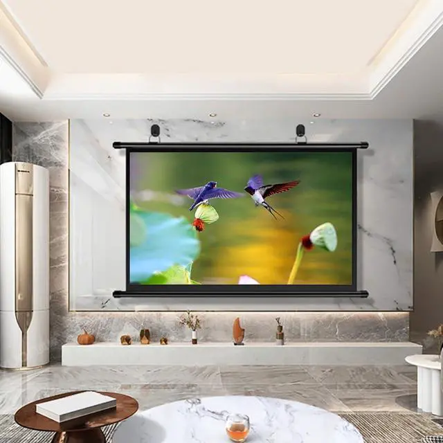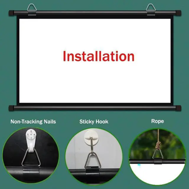 Easy to install: The projection screen can be easily mounted on the ceiling or wall, no tools are required during installation, and it can be easily stored and hidden when not in use, saving you space.