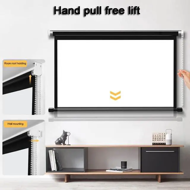 The projector curtain adopts a hand-pull free lifting design, which can be used when it is pulled open, and the screen can be easily pulled down and retracted, which is very convenient and fast.
