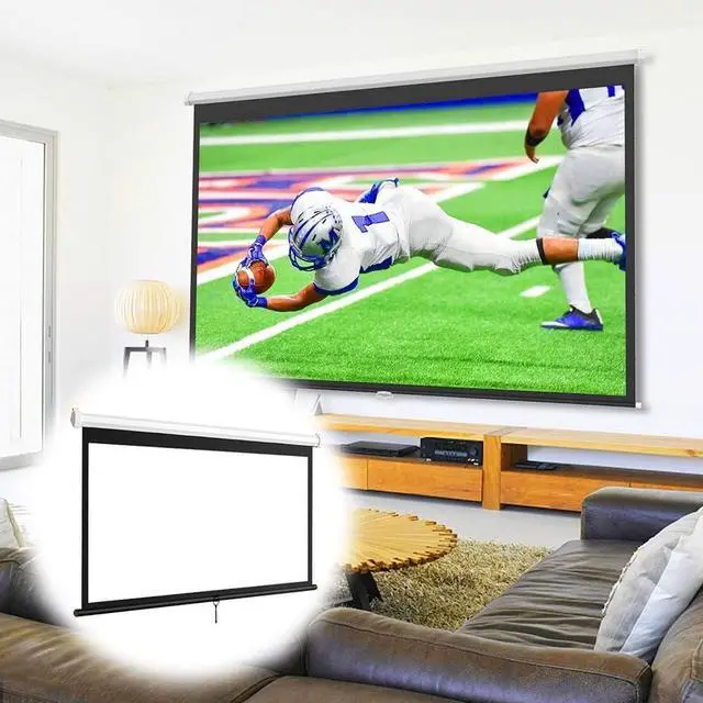 Manual pull-down projector screen requires no electricity and is lightweight and convenient. Can be easily rolled up to save space, perfect for indoor and outdoor use