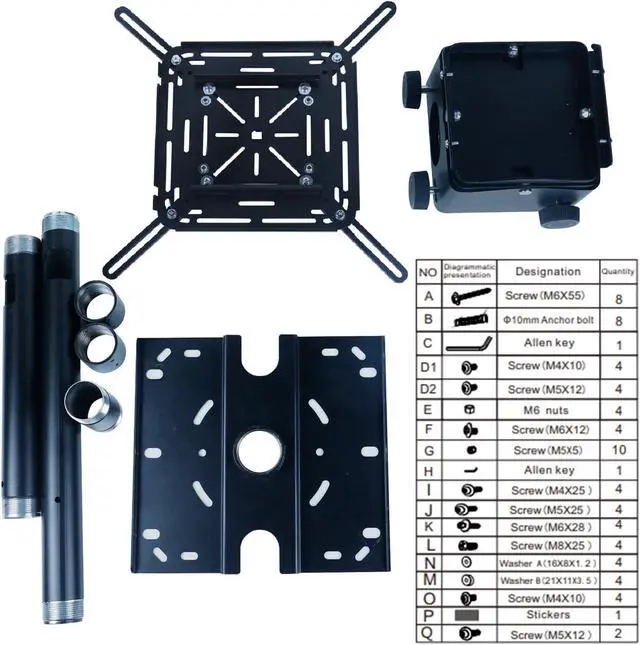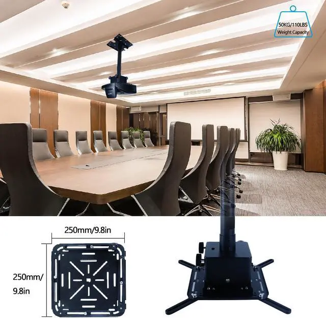 Professional EquipmentProjector ceiling mount is made of high-quality aluminum and iron material, corrosion-resistant; size: 527mm*306mm*230mm, telescopic length can reach 150mm-1040mm, and at the same time, it has the characteristics of high load-bearing, high precision and high adjustment sensitivity, so that you can quickly find the best projection position and get the ideal projection effect.