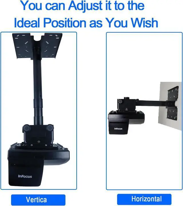 Widely UsedAdjustable projector bracket has various hanging ways,suitable for home,theater,conference,office,classroom,laboratory,hotel,stage,exhibition and many other places.