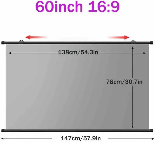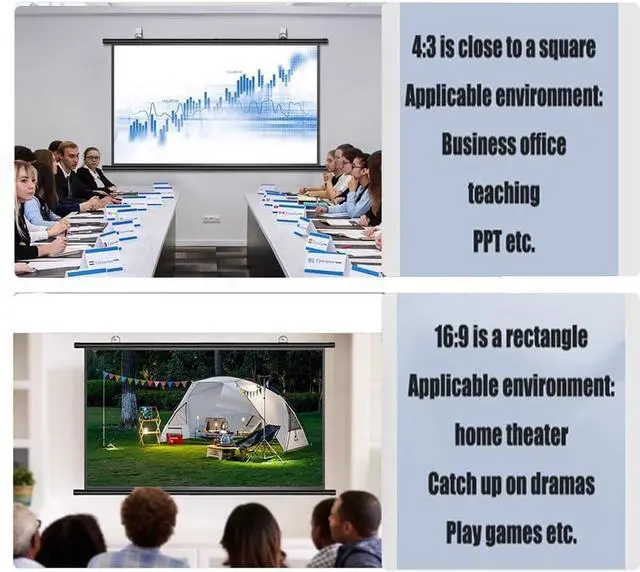 Multipurpose: 60-inch/72-inch. Projection screen can be used for business office, home movie watching, teaching and training, entertainment, games, parties and so on.
