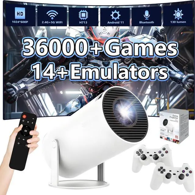 36,000+ GAMES &DUAL-BAND WIFI/BLUETOOTH: This game projector comes preloaded with over 36,000 games,plug and play. Easily relive those thrilling gaming days.Powered by support for more than 14 emulators, it delivers stable performance across many games without lag or delays. This overhead projector features 2.4G+5G dual-band WiFi, ensuring smooth online game loading with zero lag or buffering, delivering synchronized visuals and audio. Bluetooth functionality adds flexibility to connectivity options