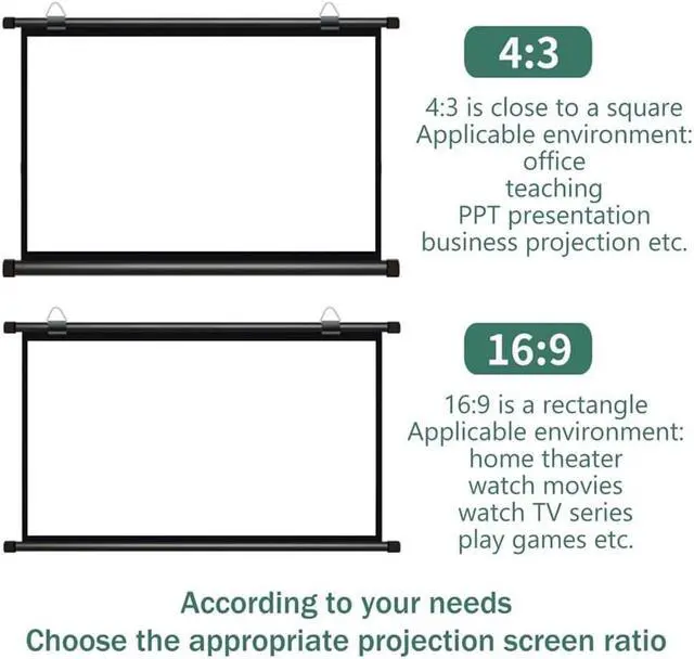 Screen Format: The movie screen supports 4:3 and 16:9 formats. 16:9 is suitable for home theaters, gaming, and KTV, while 4:3 is ideal for business, office, and educational PPT presentations, making it versatile.