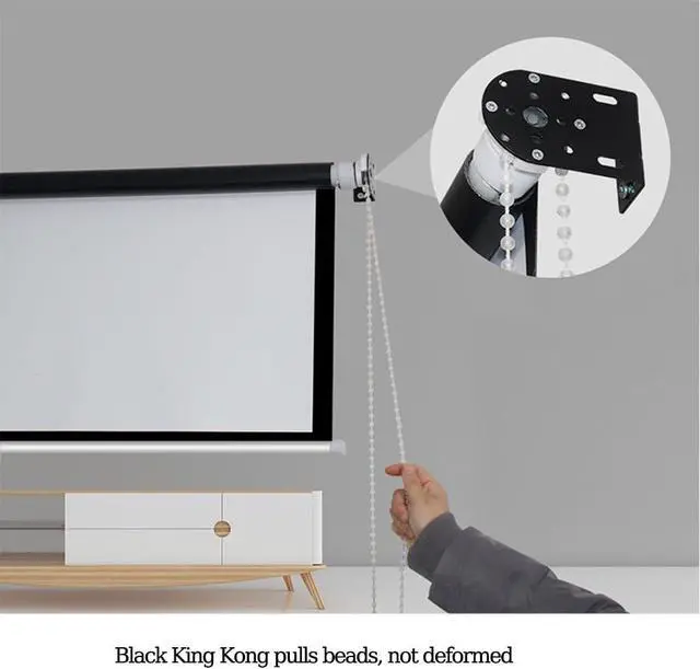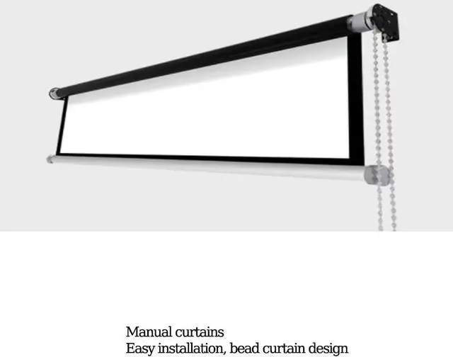 The projector screen can be manually pulled down, featuring a hand-pull bead chain design, allowing it to be extended or retracted as needed. It is easy to roll up, saving space, and is suitable for both indoor and outdoor use.