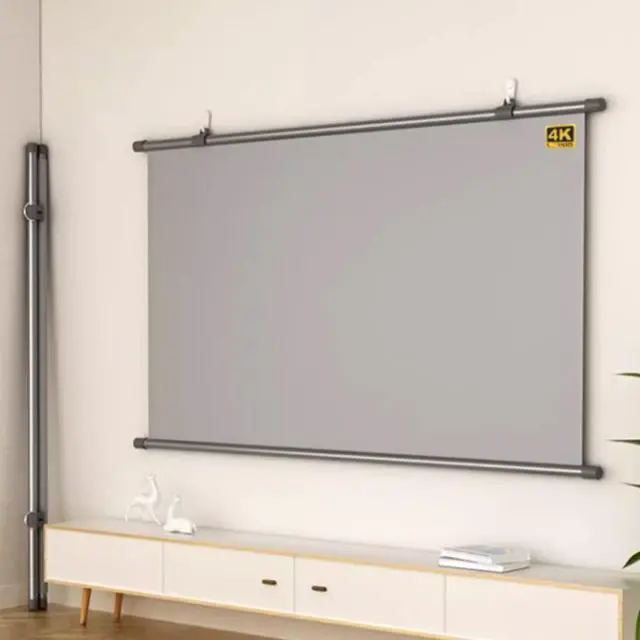 Anti light wall mounted projection screen, using pvc polymer material with anti light process, absorbing and filtering ambient light, so you can use it normally in the daytime.