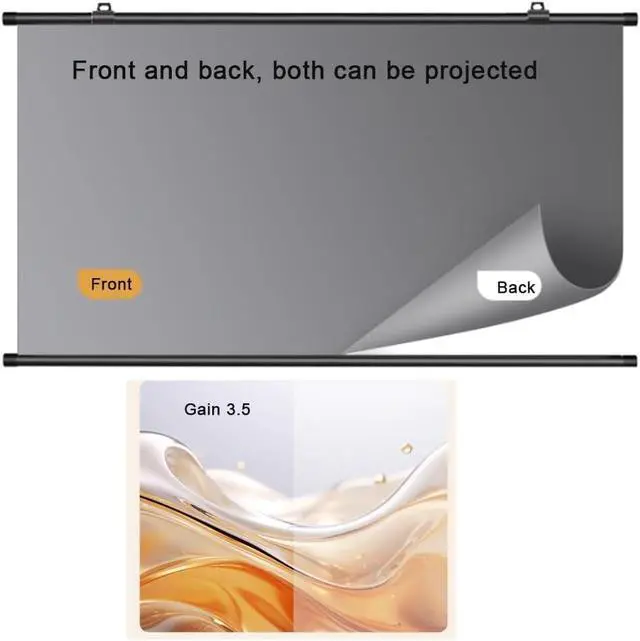 The projection screen can be used on both sides, and the screen gain is 3.5 times, which makes the image more realistic, brighter and clearer, and the colors more colorful.