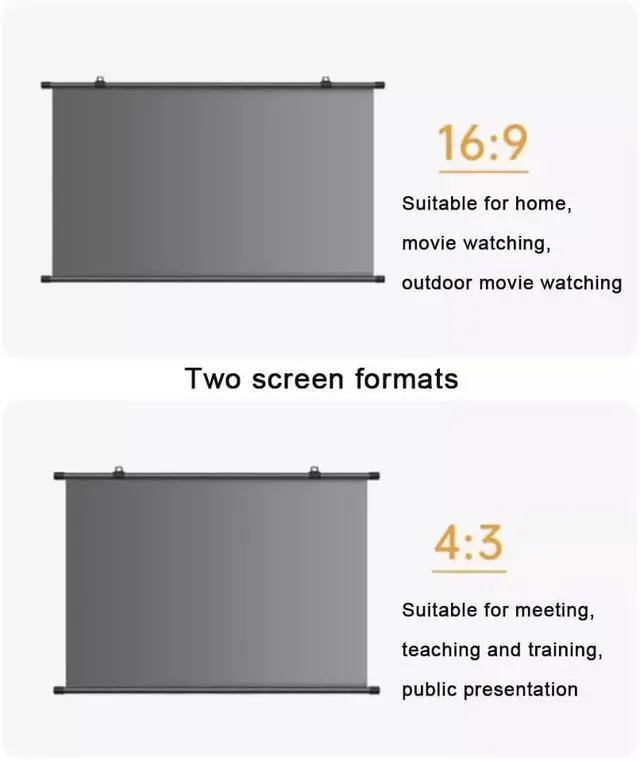 Manual pull down projection screen, easy to store, space-saving, wall-mounted installation, hole-free, indoor and outdoor can be used.