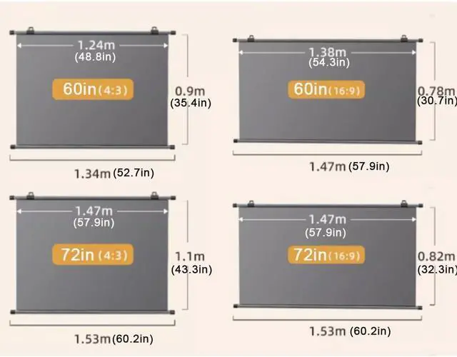 Two screen formats; 16:9 is suitable for home theater, playing games, KTV, 4:3 is suitable for business office, school teaching presentations and so on.
